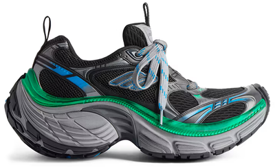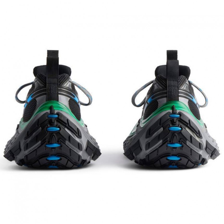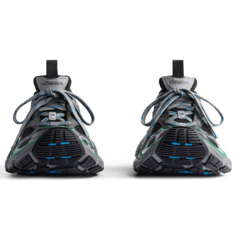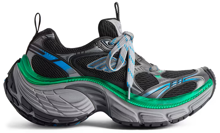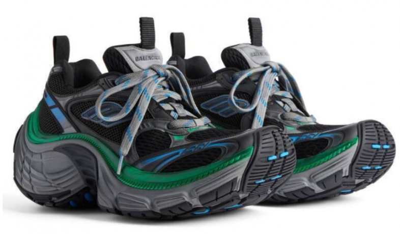 Смелый и внушающий восхищение силуэт 10XL Sneaker отражает современные тенденции уличной моды с его увеличенной подошвой и выразительным сочетанием черного, серого и голубого оттенков. Дизайн подчеркивает динамичный образ жизни и подходит как для высокой моды, так и для повседневного комфорта.